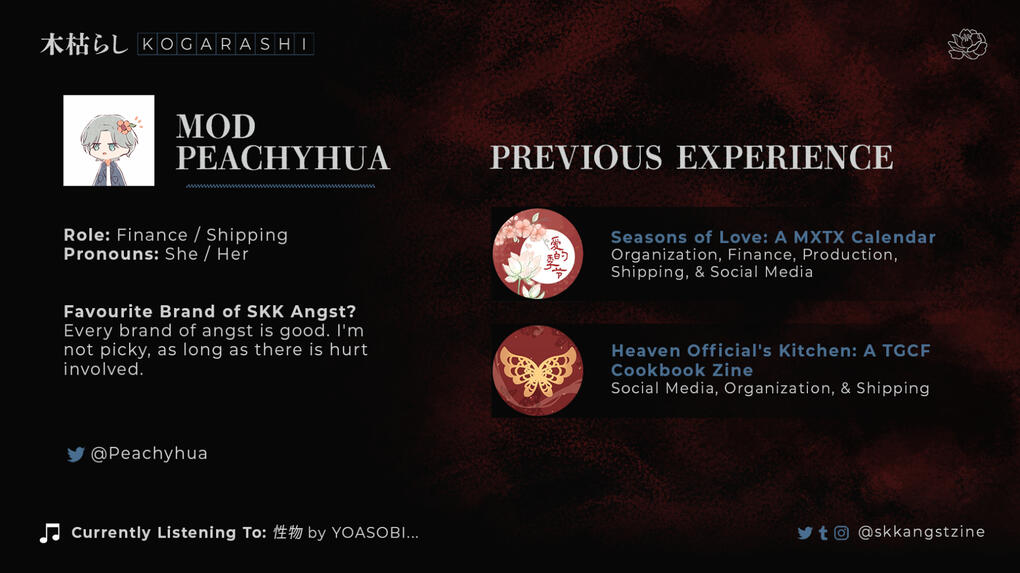 Currently, we require contributors to be 18+ to apply to Kogarashi due to the angst-oriented themes of the zine, canon material, and other potentially heavy topics which may be triggering to some readers.You must be 18 years old by September 21st, 2023 to be considered for a position in the project.Following the results of an interest check, a sexually explicit NSFW add-on can optionally be included in zine bundles.